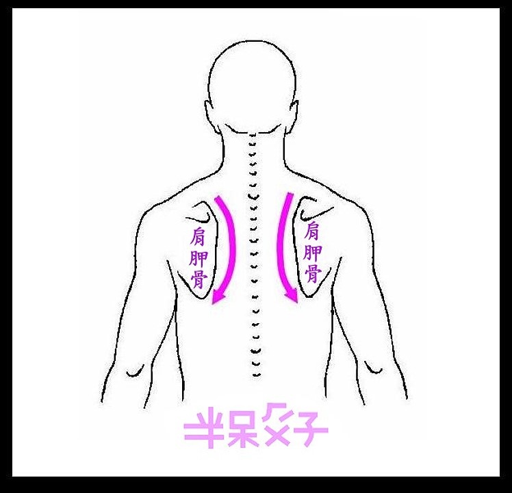 ●因「肩胛骨」位於背後,自己推按甚為困難,則可請託別人代勞。