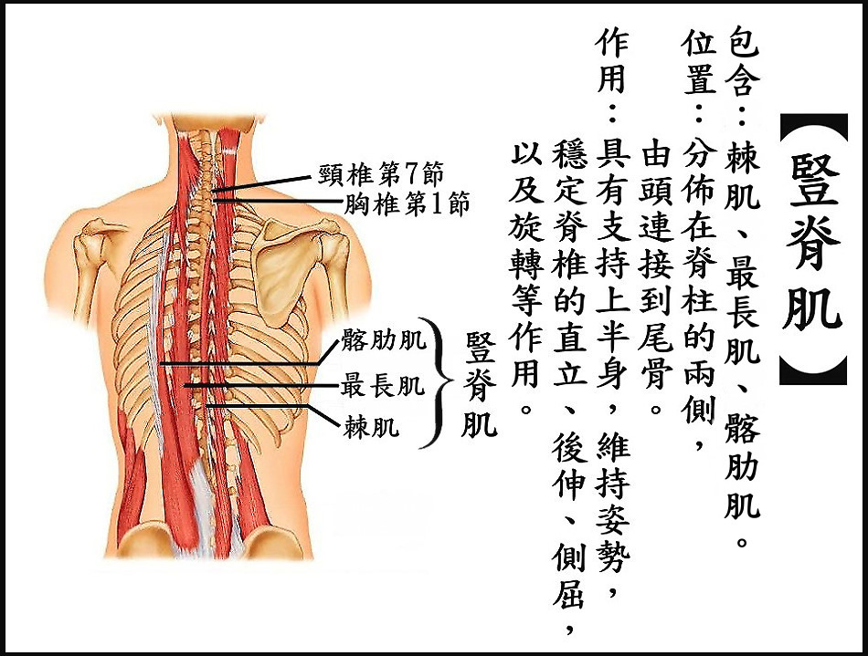 ●(豎脊肌),顧名思義,是能讓脊椎骨豎立的肌肉。