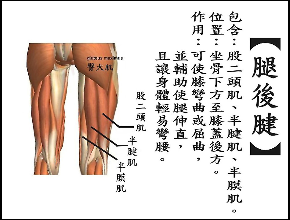 ●此三者可使膝彎曲或屈曲,並輔助使腿伸直,且讓身體輕易彎腰。