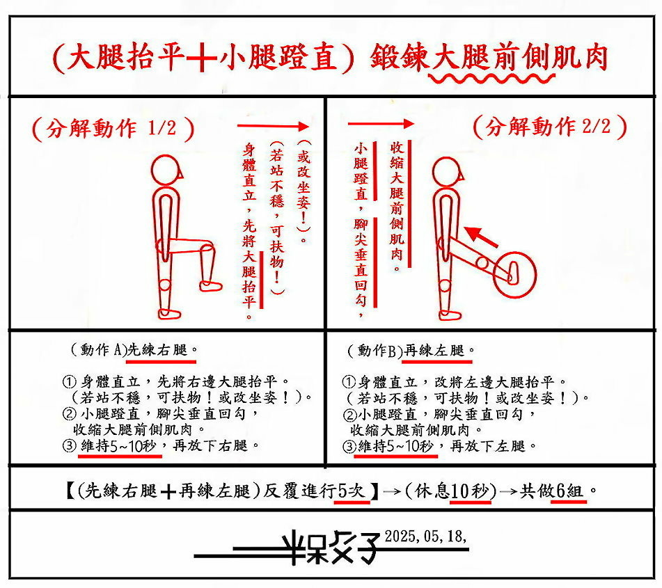 ●(貳)(大腿抬平+小腿蹬直)鍛鍊(大腿前側)肌肉。
